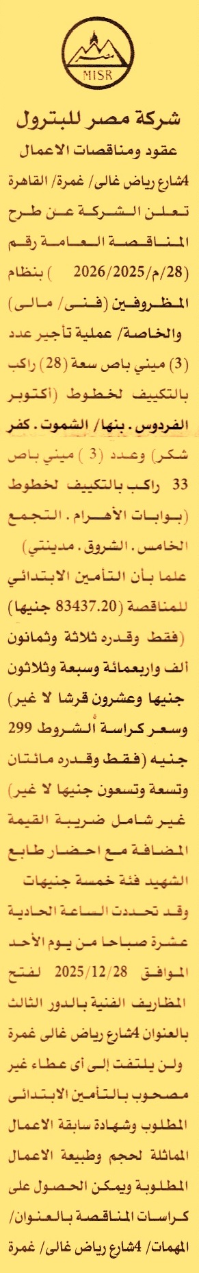 مناقصة عامة رقم 28/م/2025/2026 لعملية