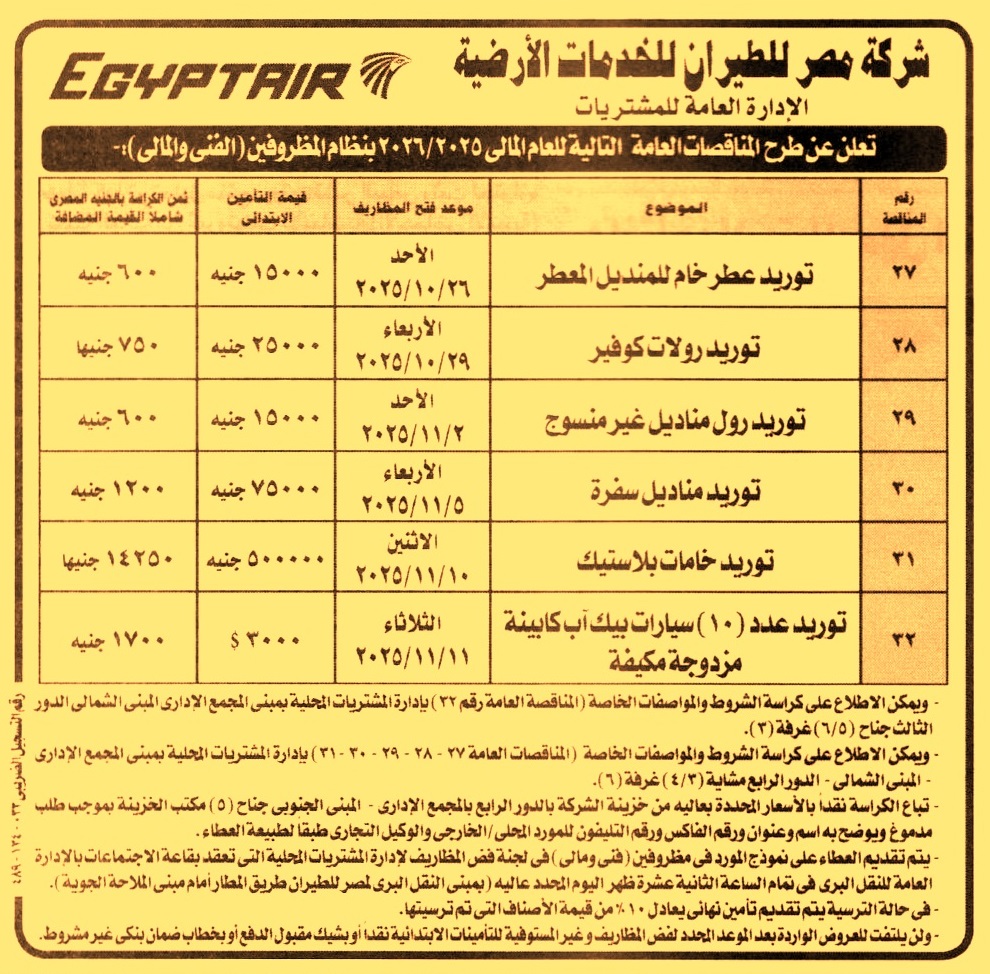 مناقصة عامة رقم 27/2025/2026 لعملية