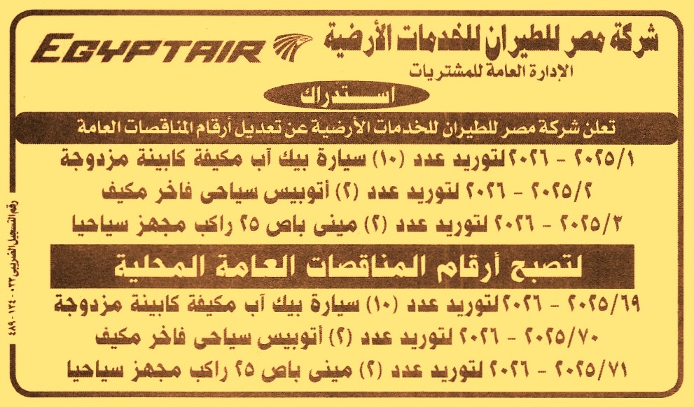 تعلن الشركة عن تعديل أرقام المناقصات الأتية