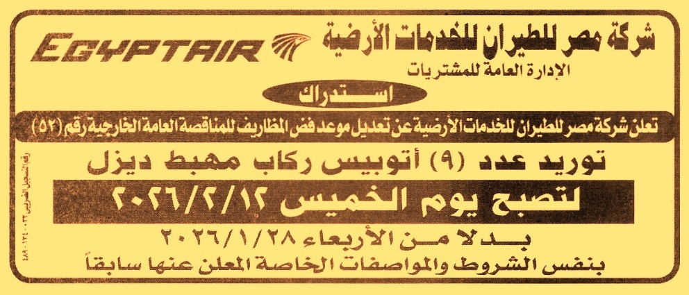 للمناقصة الخارجية العامة رقم 52/2025/2026 لعملية
