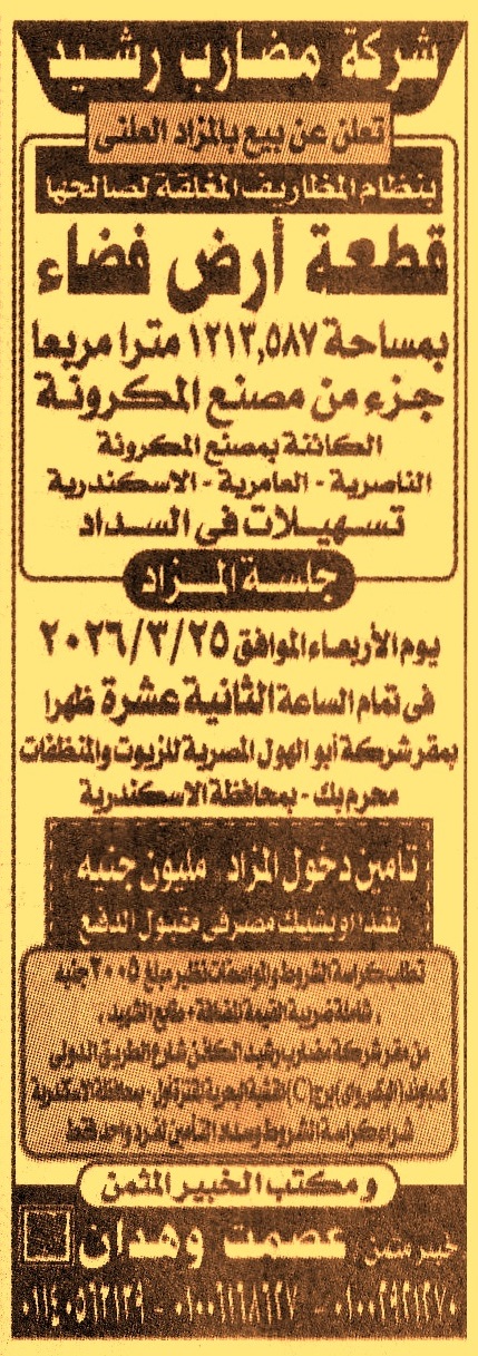 بيع جزء من أرض مصنع المكرونة بمساحة 1213.587م2