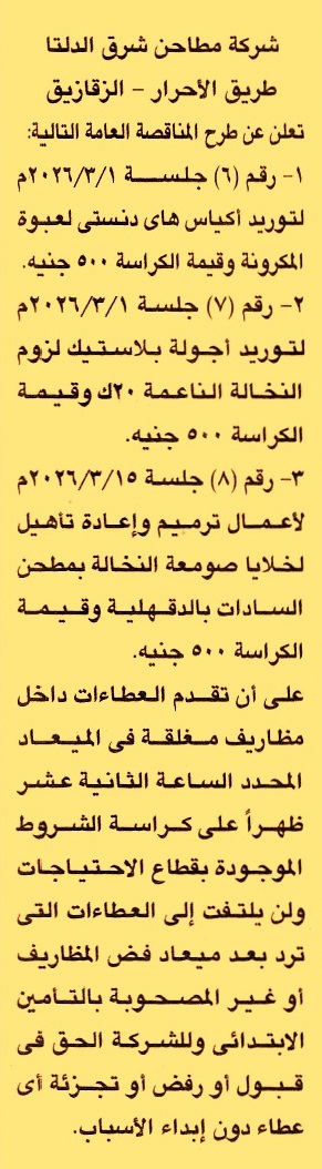 (للشركة الحق في قبول أو رفض أو تجزئة أي عطاء دون إبداء الأسباب)