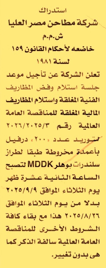 تعلن الشركة عن تأجيل جلسة فتح المظاريف الفنية