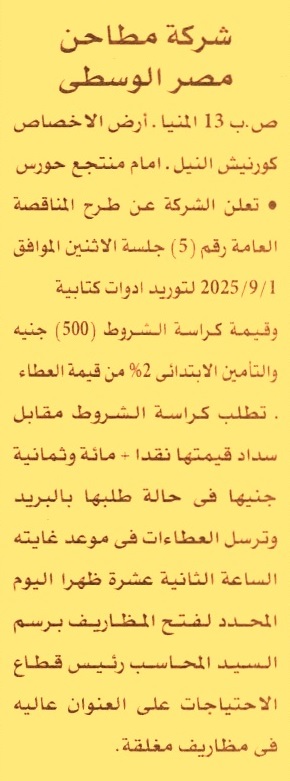 مناقصة عامة رقم 5/2025 لعملية