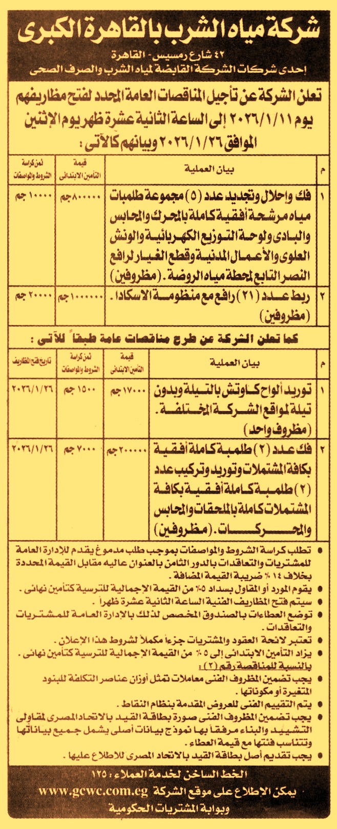 HOT information مناقصة عامة لعملية توريد ألواح كاوتش بالتيلة وبدون تيلة لمواقع الشركة المختلفة عن جريدة الجمهورية Post navigation الشركة المصرية للمطارات الشركة المصرية للأملاح والمعادن بالفيوم