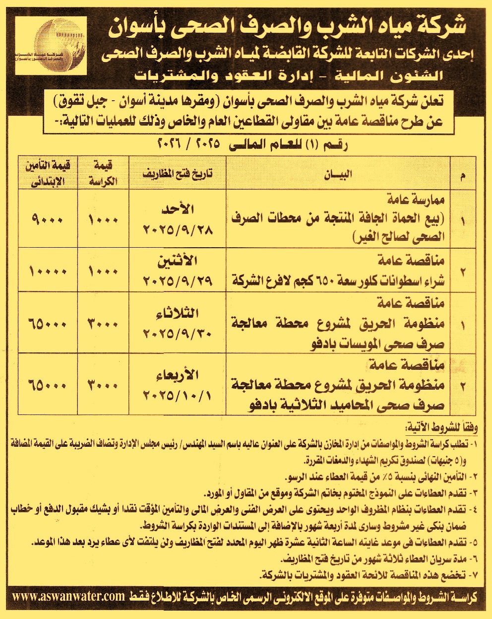 ومدة سريان العطاءات 3 أشهر)