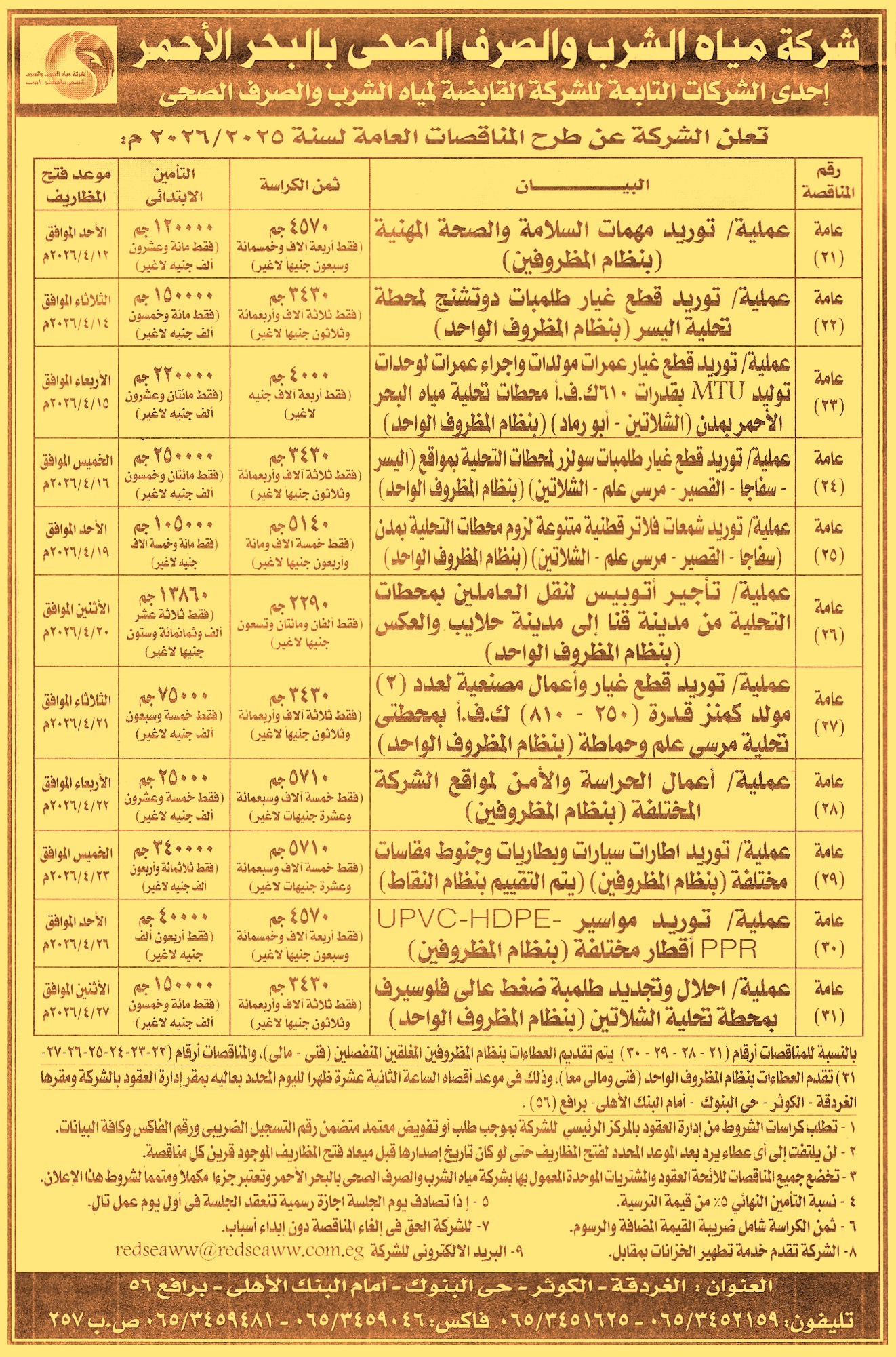 مناقصة عامة رقم 21/2025/2026 لعملية