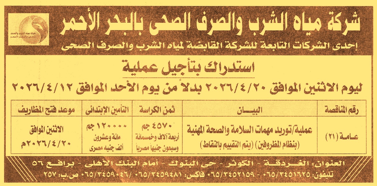 تعلن الشركة عن تأجيل جلسة فتح المظاريف