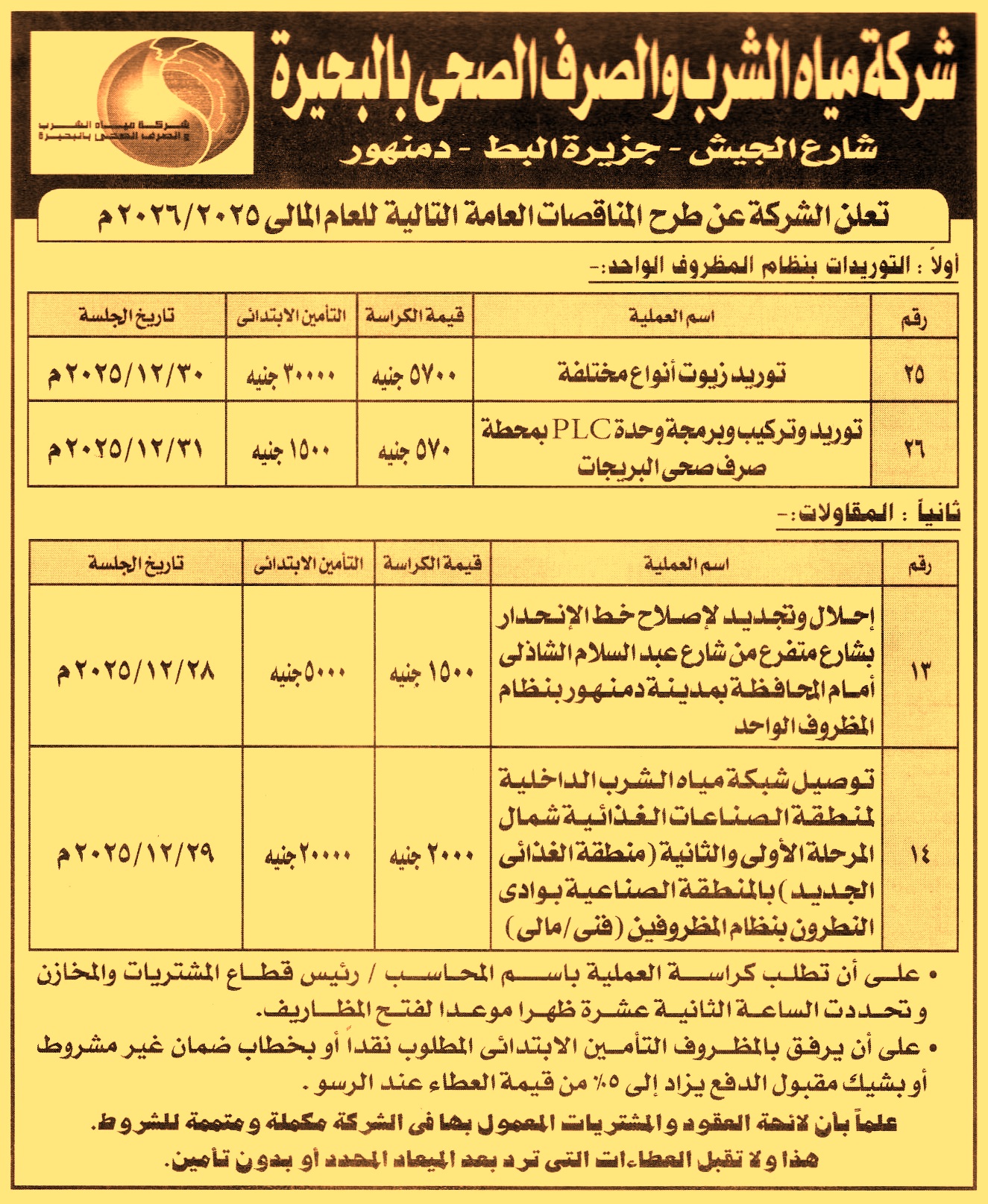 مناقصة عامة رقم 25/2025/2026 لعملية