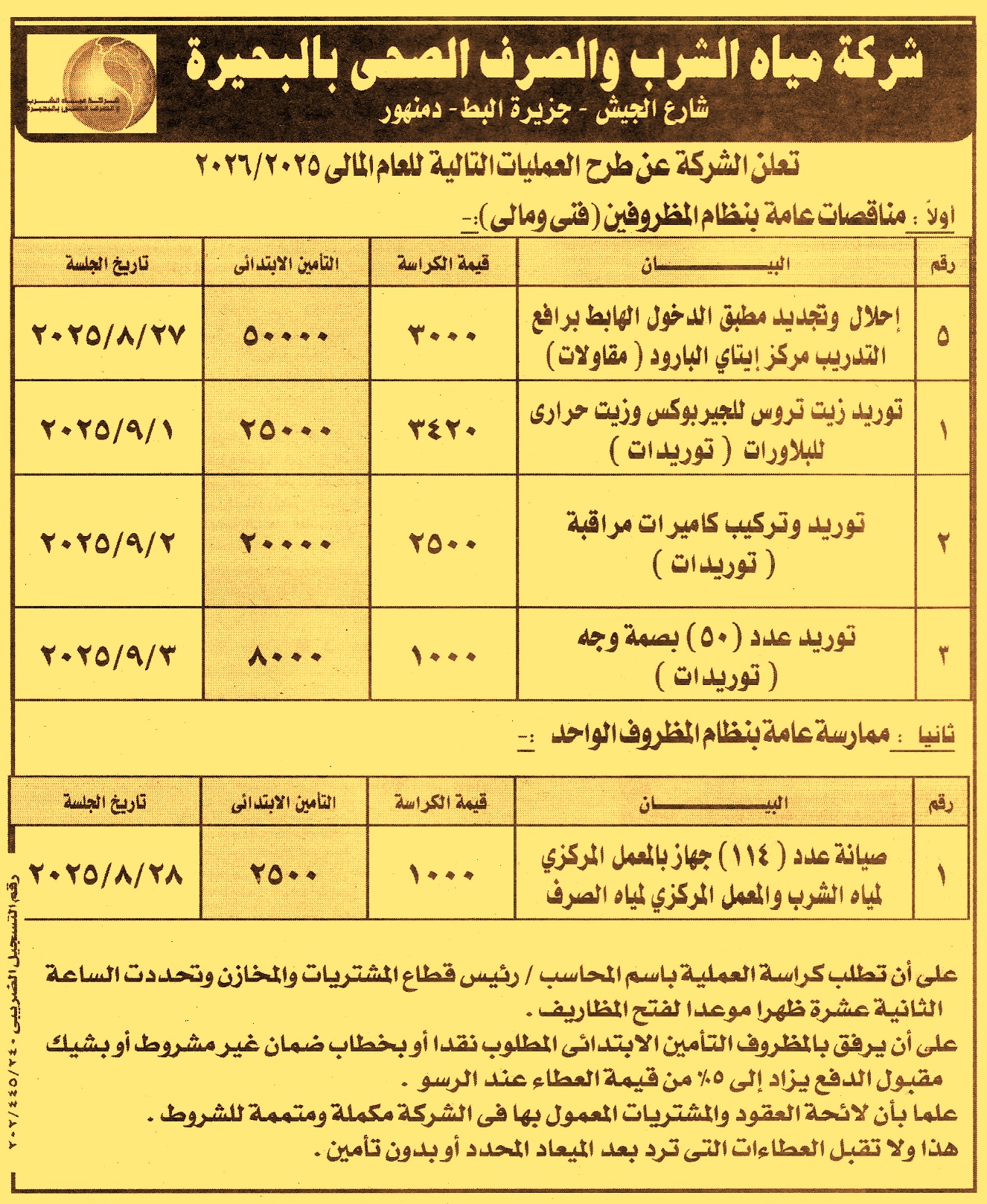 HOT Information مناقصة عامة رقم 5/2025/2026 لعملية إحلال وتجديد مطبق الدخول الهابط برافع التدريب بمركز إيتاي البارود عن جريدة الأهرام Post navigation شركة ميناء القاهرة الجوي مكتب النائب العام