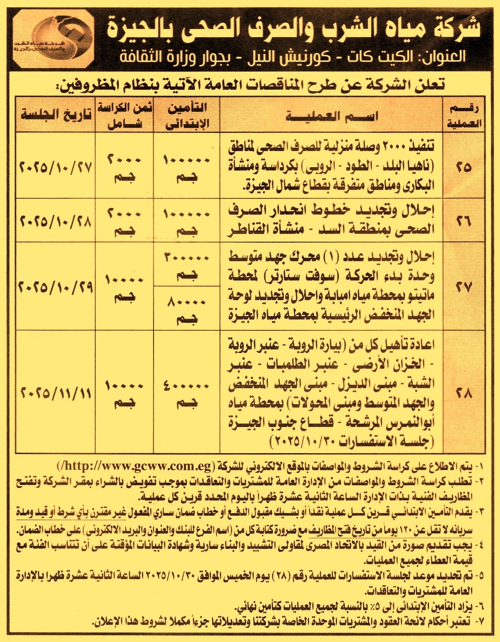 مناقصة عامة رقم 25/2025/2026 لعملية