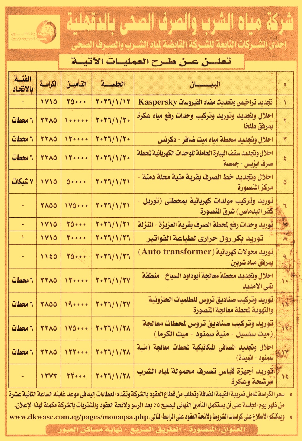 HOT Information مناقصة عامة لعملية تجديد تراخيص وتحديث مضاد الفيروسات Kaspersky عن جريدة الأخبار Post navigation شركة أرض مصر للصوامع والتخزين جهاز تنمية مدينة برج العرب الجديدة
