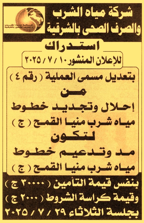 لتكون مد وتدعيم خطوط مياه شرب منيا القمح “ج”
