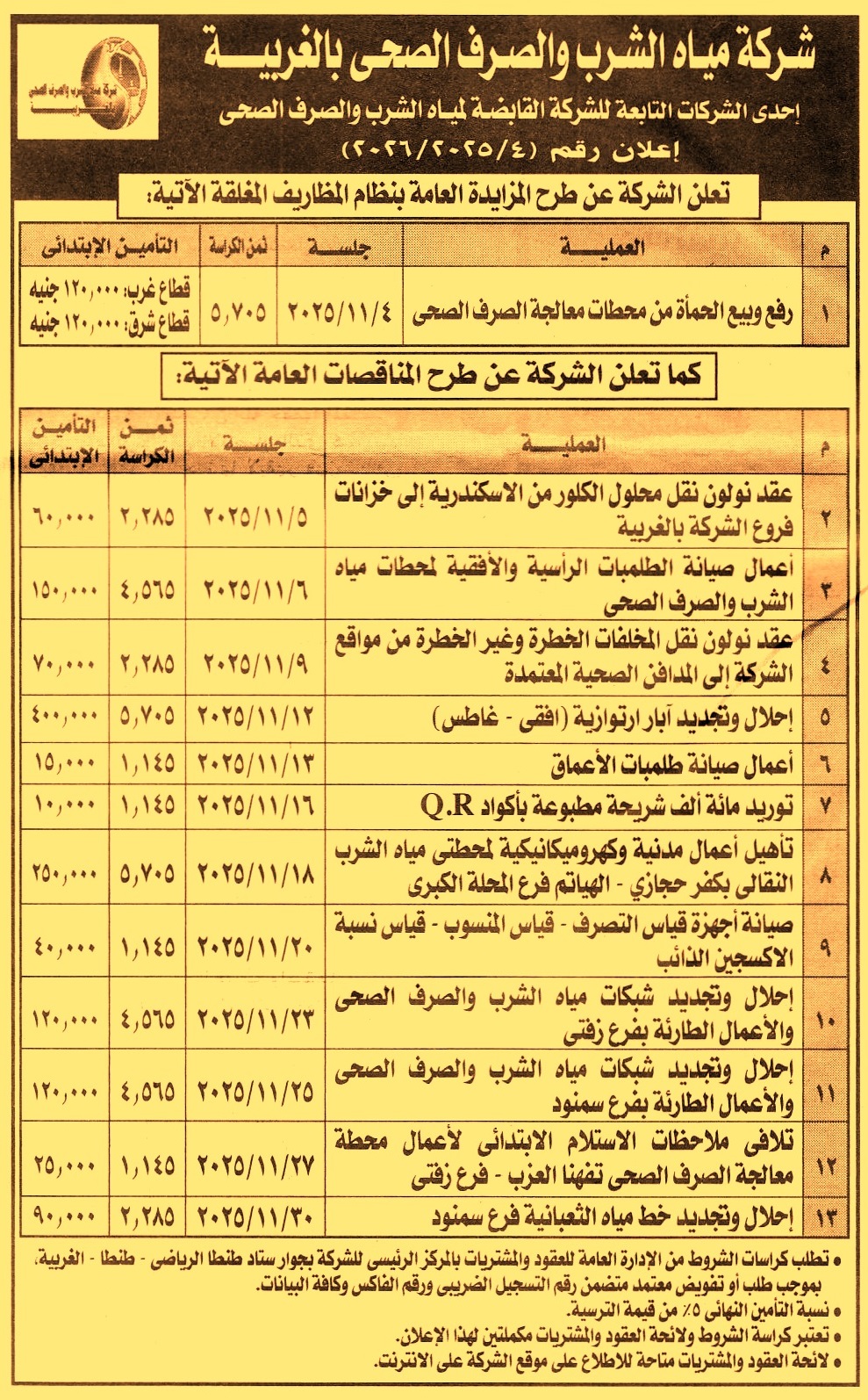 HOT Information مناقصة عامة لعملية إبرام عقد نولون نقل محلول الكلور من الإسكندرية إلى خزانات فروع الشركة بالغربية عن جريدة الأخبار Post navigation محافظة سوهاج جامعة دمنهور