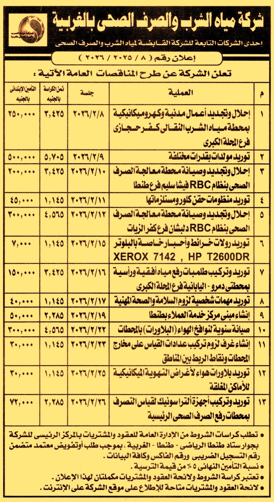 HOT Information مناقصة عامة لعملية إحلال وتجديد أعمال مدنية وكهروميكانيكية بمحطة مياه الشرب النقالي كفر حجازي فرع المحلة الكبرى عن جريدة الجمهورية Post navigation الهيئة العامة لتعليم الكبار محافظة المنيا