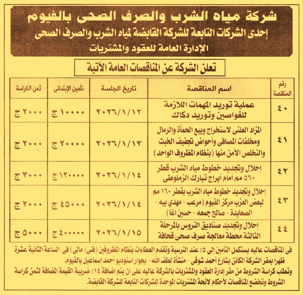 HOT Information مناقصة عامة رقم 40 لعملية توريد المهمات اللازمة للغواصين وتوريد دكاك عن جريدة الأخبار Post navigation الهيئة القومية لسكك حديد مصر حي الشرابية