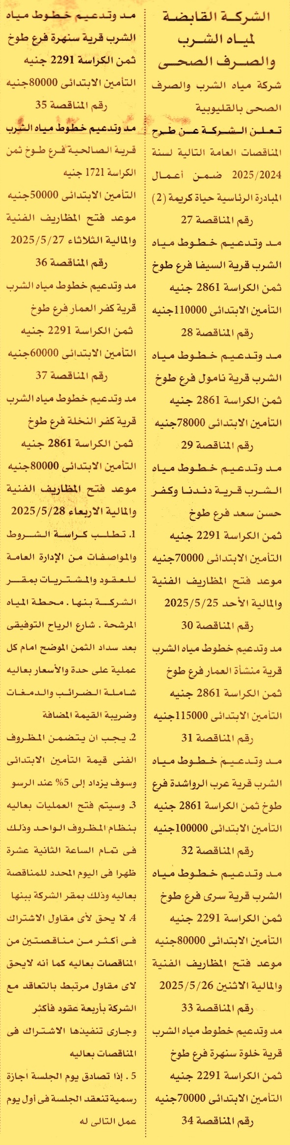 مناقصة عامة رقم 27/2024/2025 لعملية