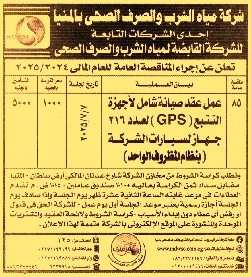 مناقصة عامة رقم 85/2024/2025 لعملية