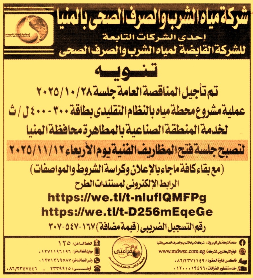 شركة مياه الشرب والصرف الصحي بالمنيا