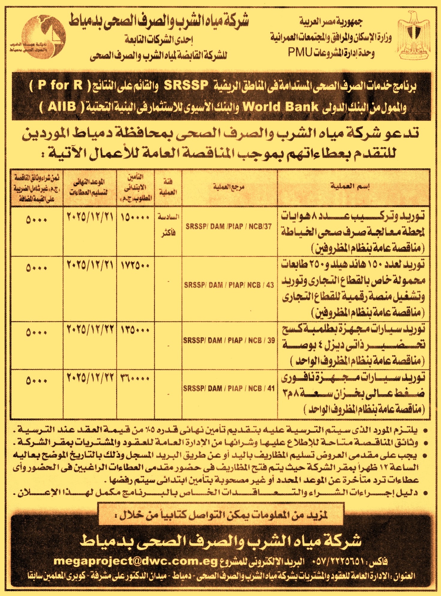 مناقصة عامة رقم SRSSP/DAM/PIAP/NCB/37 لعملية