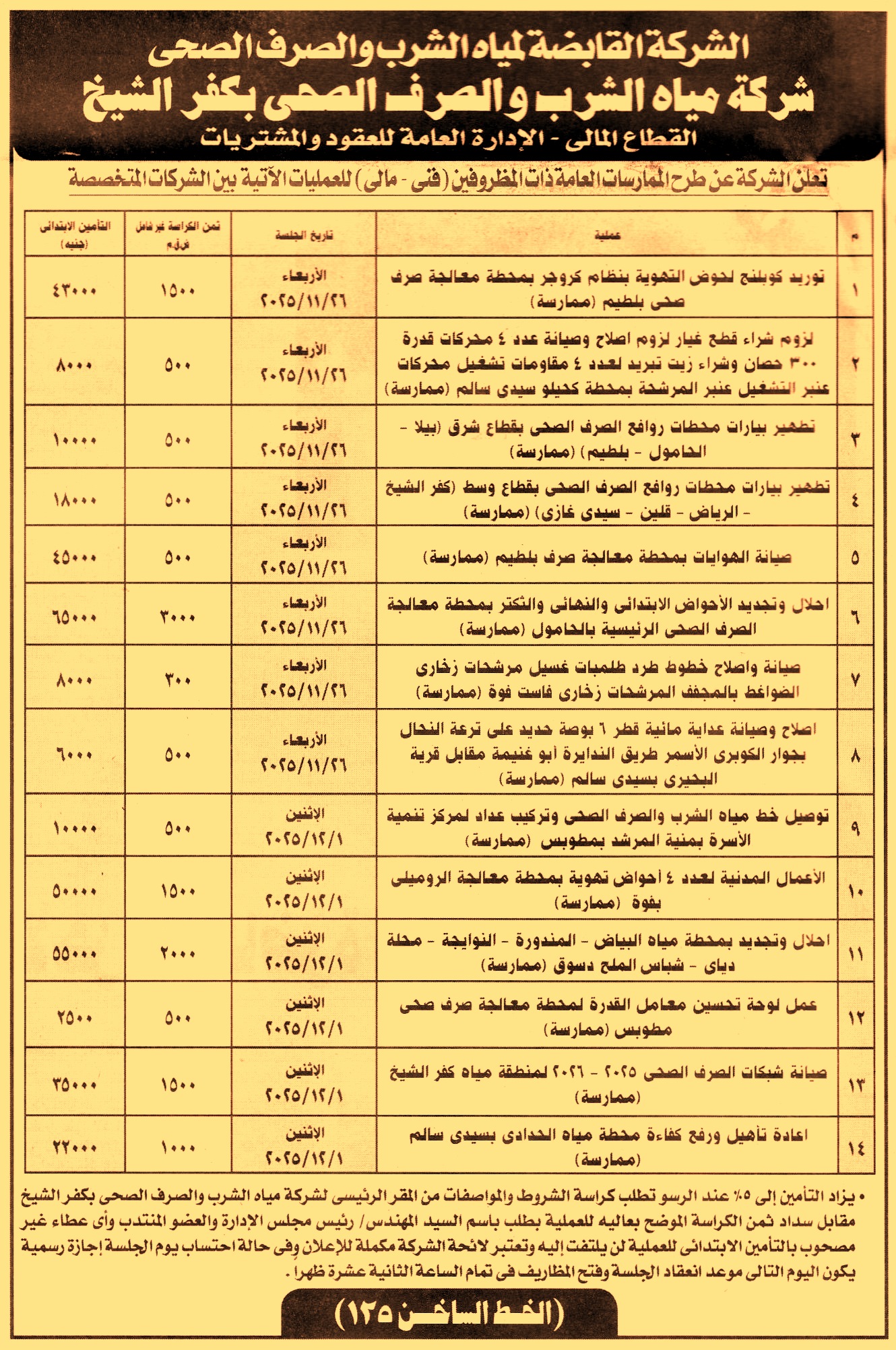 HOT Information ممارسة عامة لعملية توريد كوبلنج لحوض التهوية بنظام كروجر بمحطة معالجة صرف صحي بلطيم عن جريدة الأهرام Post navigation شركة مياه الشرب والصرف الصحي بالمنيا الشركة المصرية للمطارات