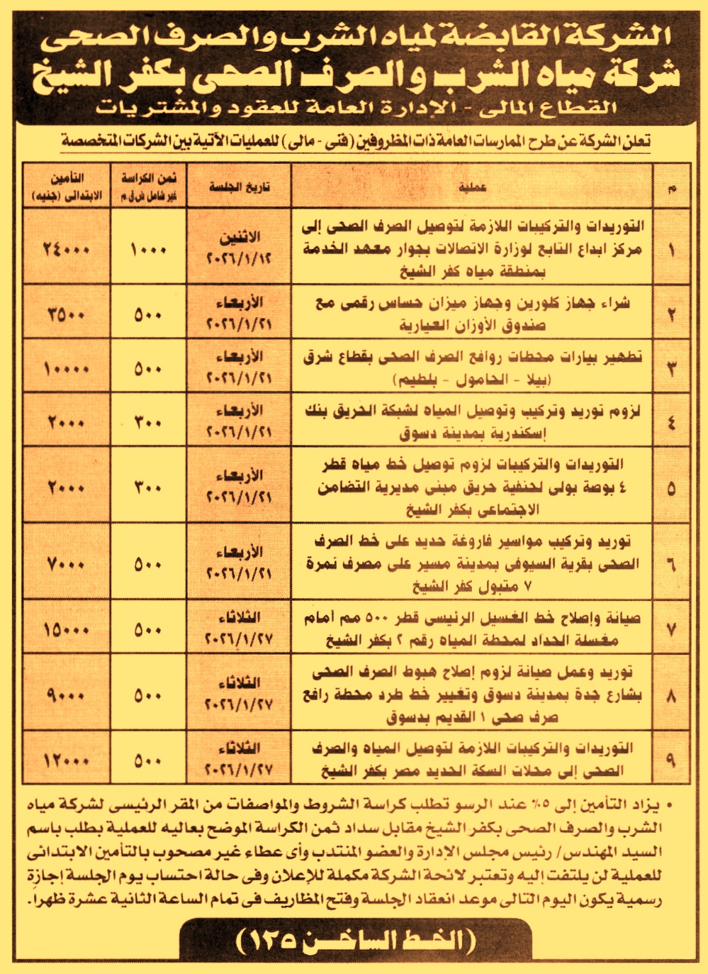 HOT Information ممارسة عامة لعملية تنفيذ أعمال التوريدات والتركيبات اللازمة لتوصيل الصرف الصحي إلى مركز إبداع التابع لوزارة الاتصالات بجوار معهد الخدمة بمنطقة مياه كفر الشيخ عن جريدة الأهرام Post navigation نادي اسكو الرياضي الشركة المصرية للمطارات