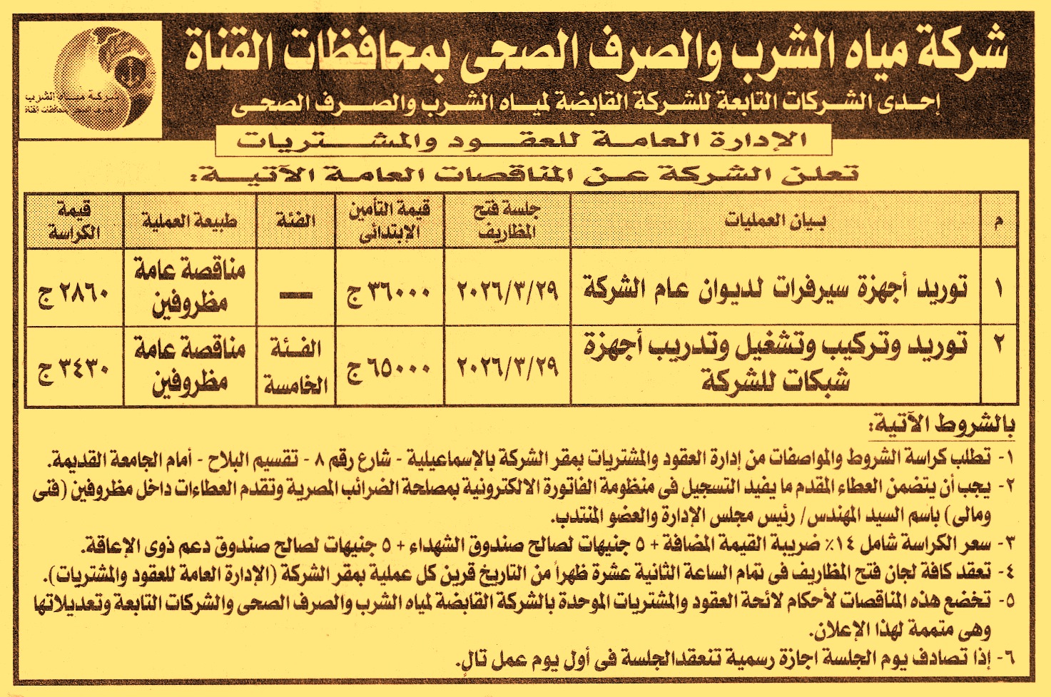 توريد أجهزة سيرفرات لديوان عام الشركة