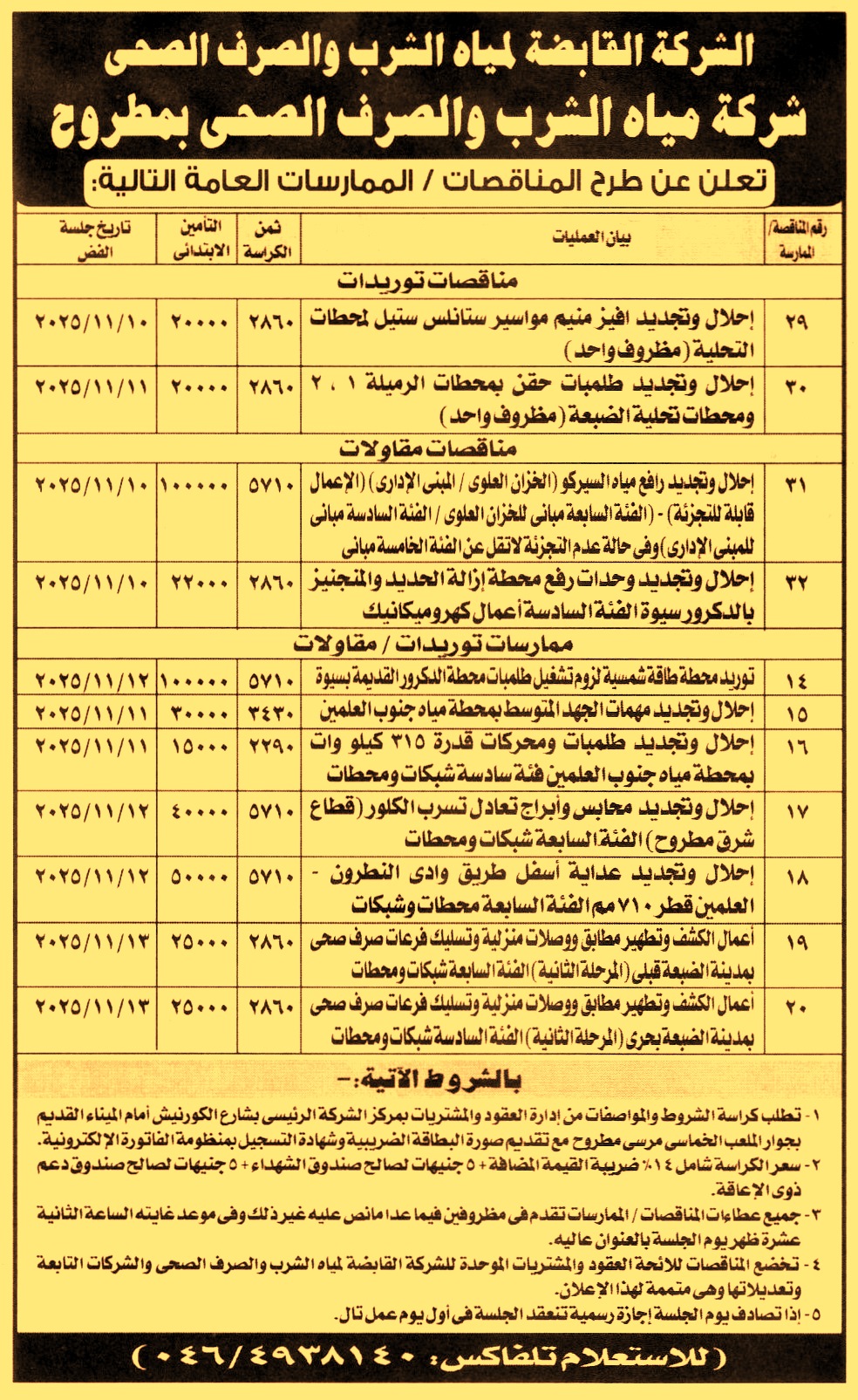 HOT information مناقصة عامة رقم 29 لعملية إحلال وتجديد افيز منيم مواسير ستانلس ستيل لمحطات التحلية عن جريدة الأهرام Post navigation شركة ارابيا المصرية التركية لصناعة الأغذية شركة النصر للمسبوكات