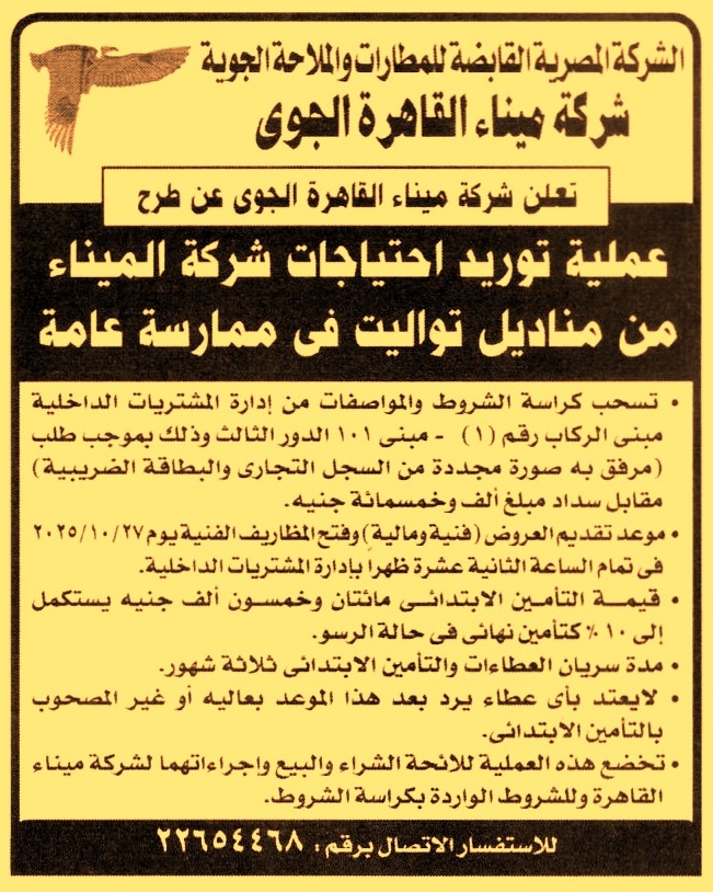 HOT information ممارسة عامة لعملية توريد مناديل تواليت (مدة سريان العطاءات والتأمين الإبتدائي 3 أشهر) عن جريدة الأهرام Post navigation مديرية المساحة بالجيزة البنك الاهلي المصري