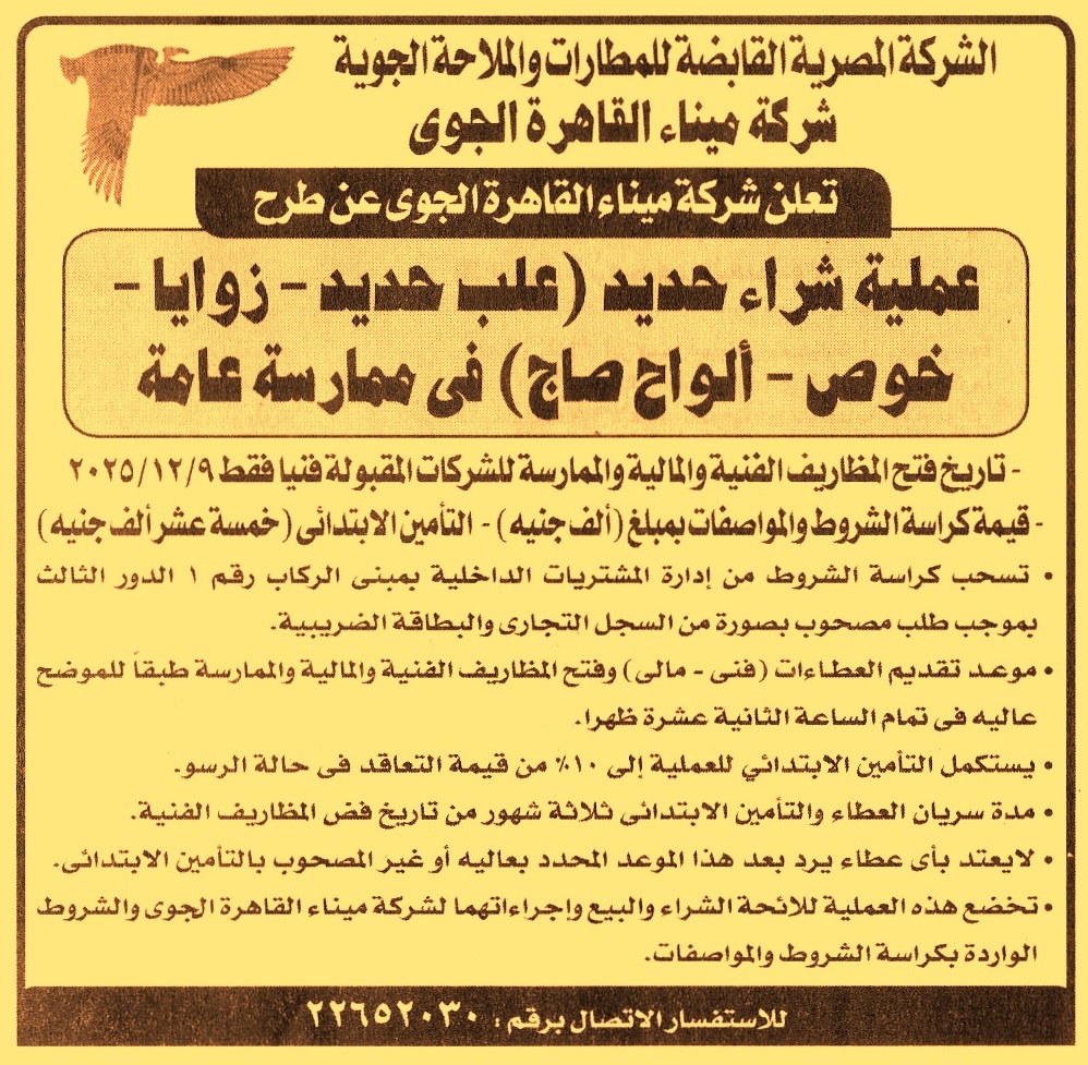 (مدة سريان العطاءات والتأمين الإبتدائي 3 أشهر)