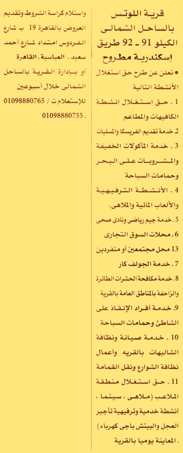 (المعاينة يوميا واستلام الكراسة وتقديم العروض خلال أسبوعين)