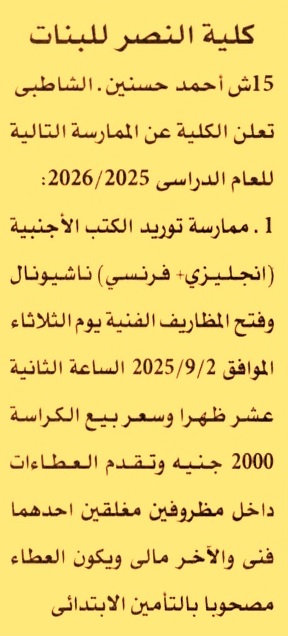 HOT Information ممارسة عامة لعملية توريد الكتب الأجنبية “انجليزي – فرنسي” ناشيونال عن جريدة الأهرام Post navigation مستشفى البترول بالإسكندرية جهاز تنمية مدينة دمياط الجديدة