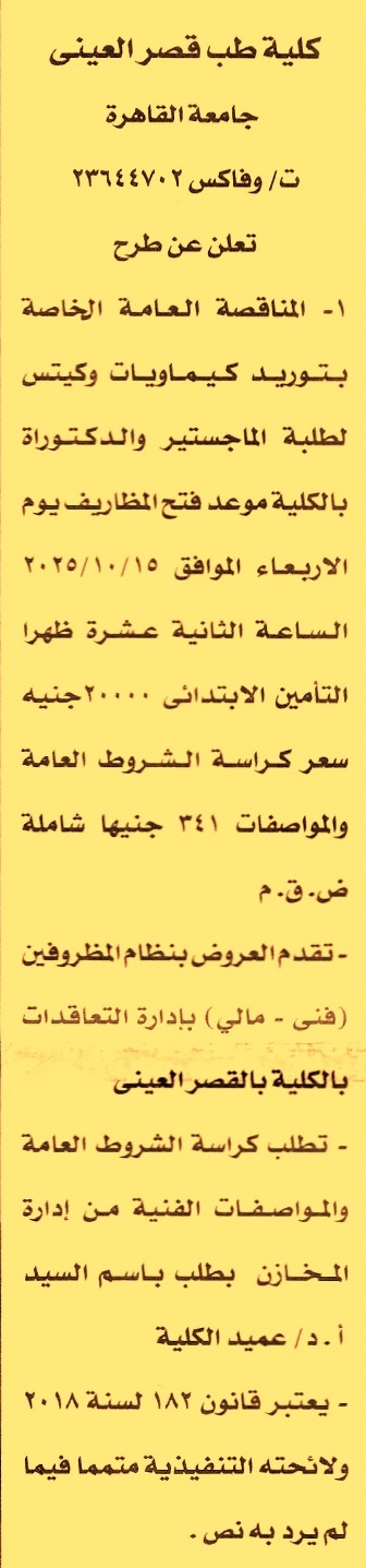 HOT Information مناقصة عامة لعملية توريد كيماويات وكيتس لطلبة الماجستير والدكتوراة بالكلية عن جريدة الأخبار Post navigation جامعة طنطا الوحدة المحلية لمركز ومدينة سيدي سالم