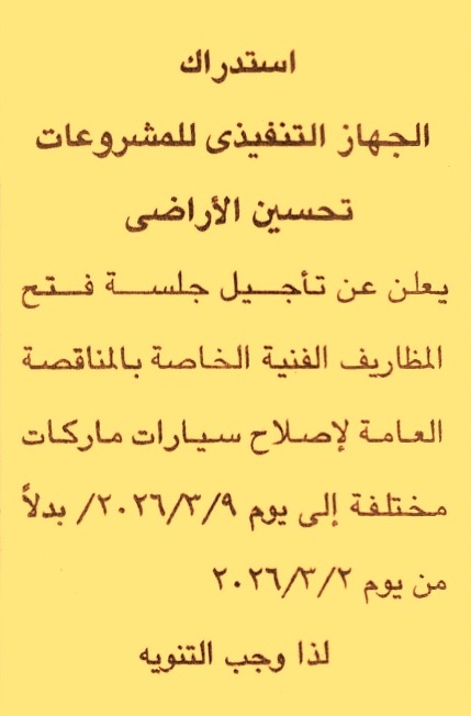 يعلن الجهاز عن تأجيل جلسة فتح المظاريف الفنية