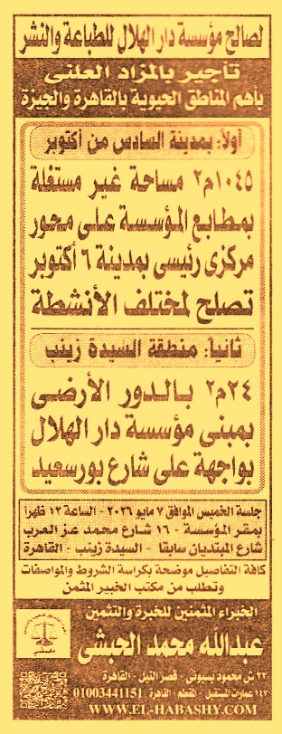 1045م2 مساحة غير مستغلة بمطابع المؤسسة على محور مركزي رئيسي بمدينة 6 أكتوبر تصلح لمختلف الأنشطة