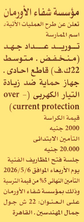 HOT information ممارسة عامة لعملية توريد عداد جهد “منخفض, متوسط, 22 ك.ف” قاطع احادي, جهاز حماية ضد زيادة التيار الكهربائي “Over Current Protection عن جريدة الأهرام Post navigation مركز شباب تلبانة بالدقهلية جامعة القاهرة