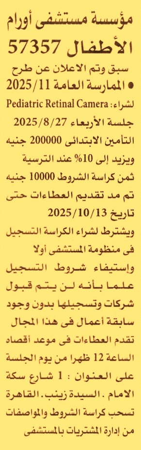 تم مد تقديم العطاءات حتى يوم 13/10/2025