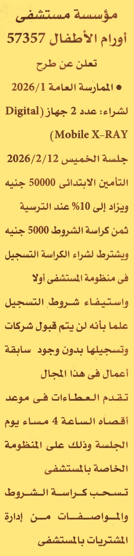 توريد عدد 2 جهاز Digital Mobile X-Ray