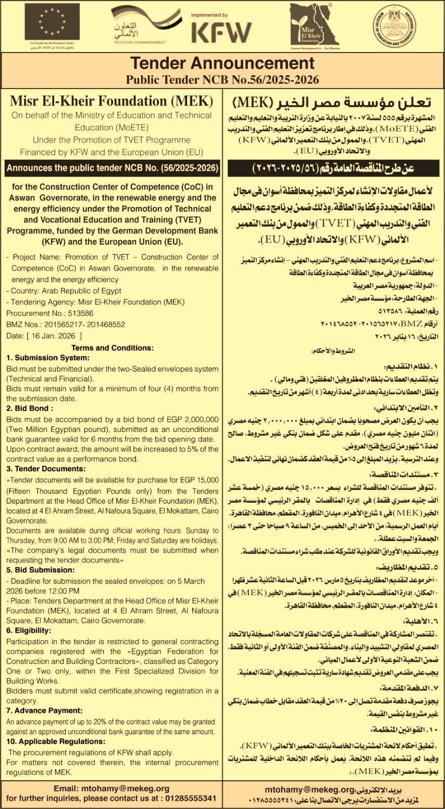 مناقصة عامة رقم 56/2025/2026 لعملية