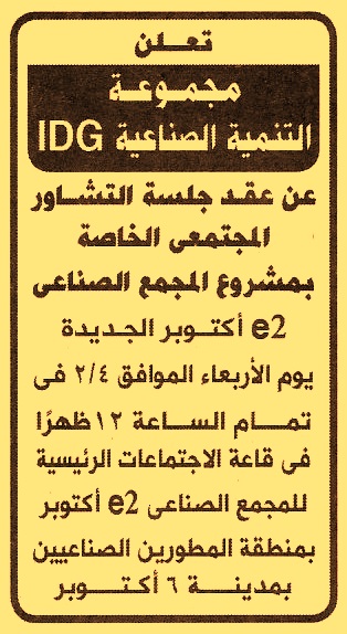 الخاصة بمشروع المجمع الصناعي E2 أكتوبر الجديدة