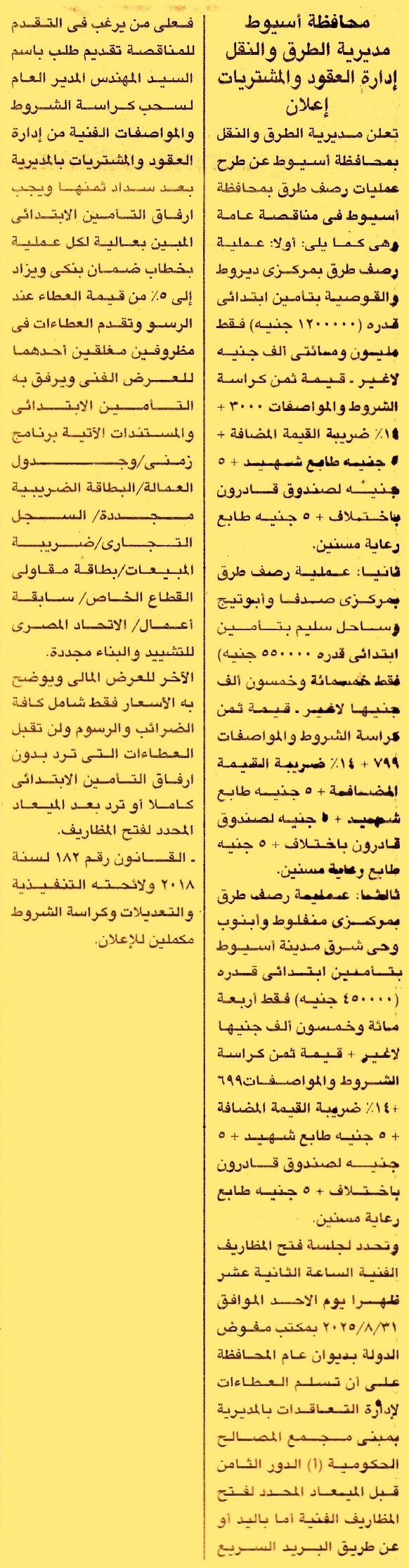 (3) رصف طرق بمركزي منفلوط وأبنوب وحي شرق مدينة أسيوط