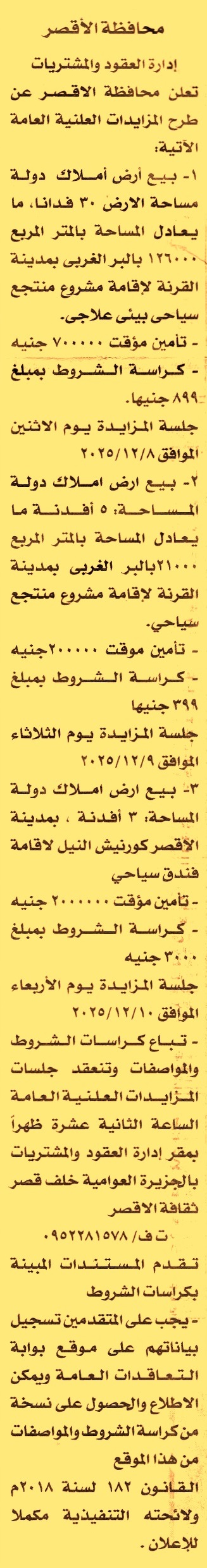 بيع أرض أملاك دولة بمساحة 30 فدان