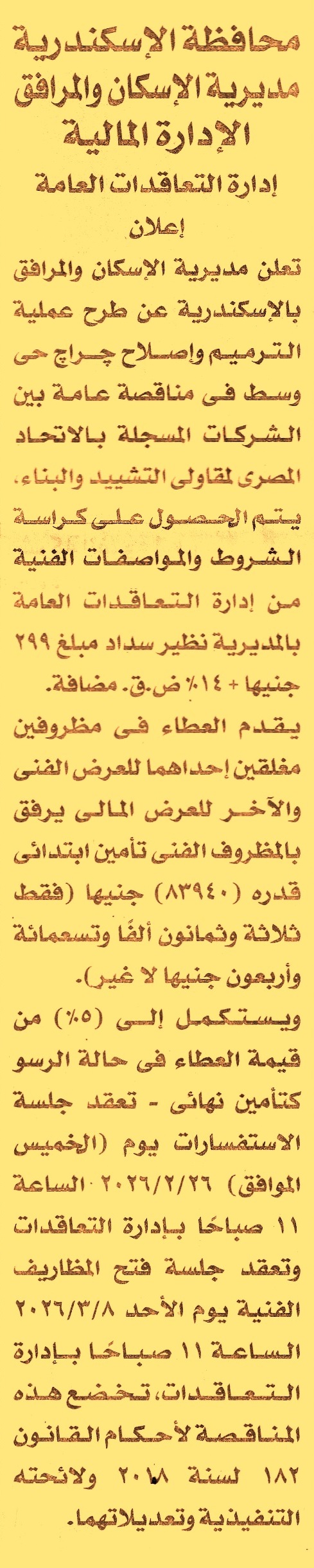 (جلسة الاستفسارات يوم 26/2/2026 الساعة 11 ص)