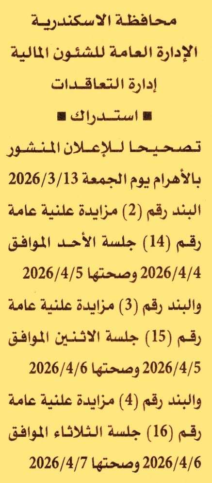 تصحيحا للإعلان المنشور بالأهرام يوم 13/3/2026