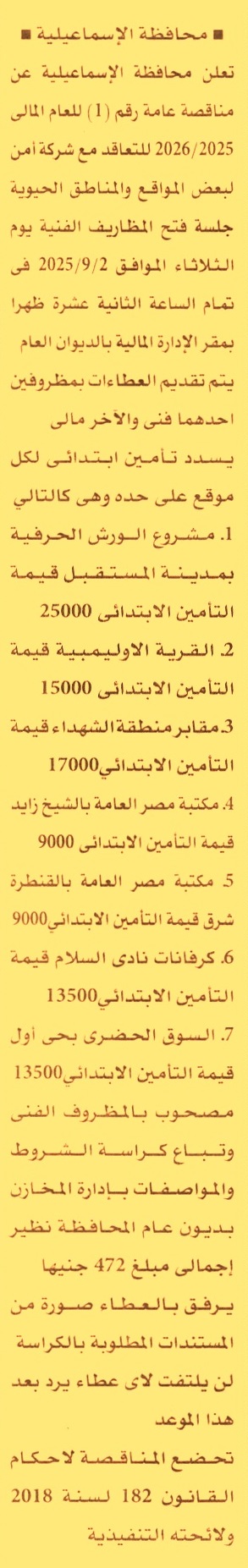 مناقصة عامة رقم 1/2025/2026 لعملية