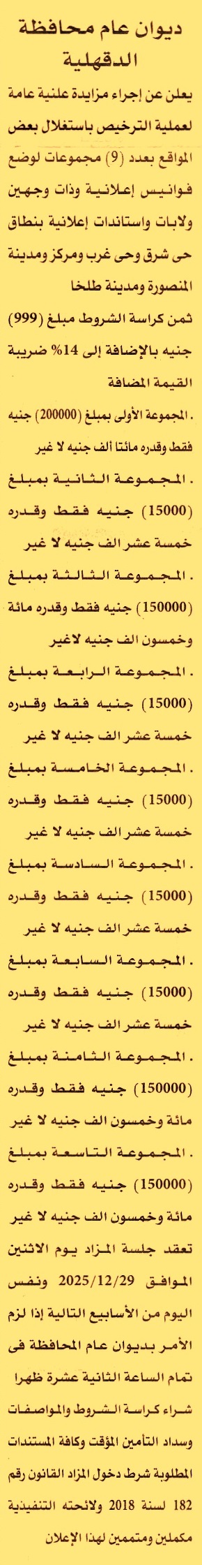 الترخيص باستغلال بعض المواقع بعدد 9 مجموعات لوضع فوانيس إعلانية وذات وجهين ولابات واستاندات إعلانية