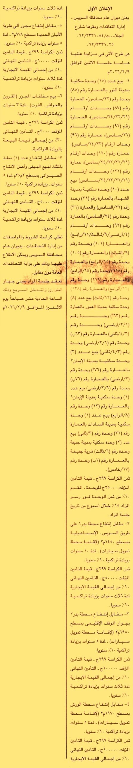 HOT Information مزايدة علنية عامة لعملية حق الانتفاع لمحطة بدر 1 على طريق السويس/ الإسماعيلية بمساحة 1450م2 لإقامة محطة تمويل سيارات لمدة 10 سنوات بزيادة 10% سنويا عن جريدة الجمهورية Post navigation مديرية الشباب والرياضة بالجيزة الجمعية المشتركة للإصلاح الزراعي بدكرنس