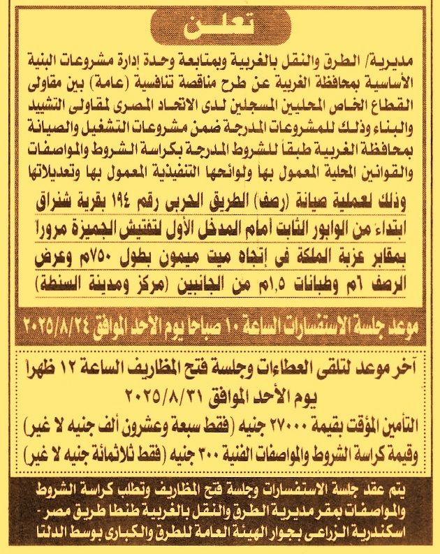 تنفيذ أعمال صيانة “رصف” الطريق الحربي رقم 194 بقرية شنراق