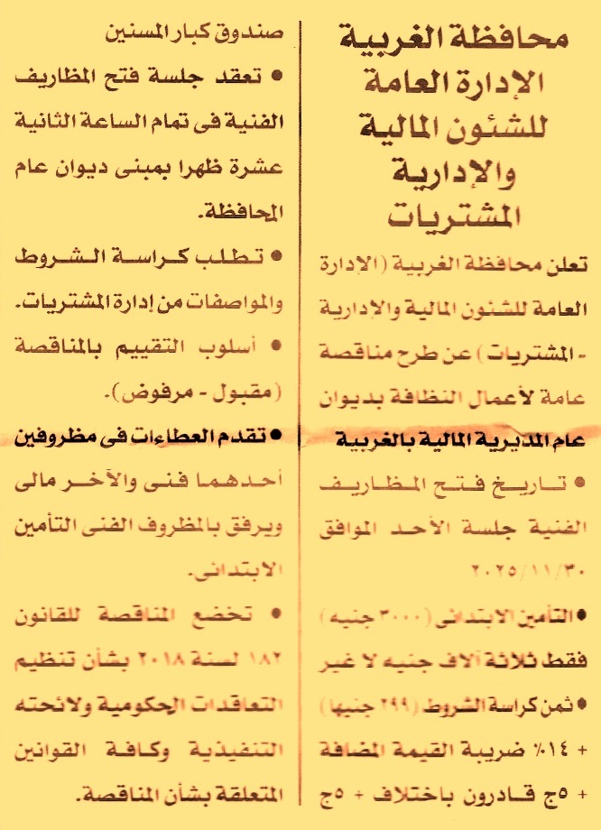 HOT Information مناقصة عامة لعملية تنفيذ أعمال النظافة بديوان عام المديرية المالية بالغربية عن جريدة الأخبار Post navigation جامعة القاهرة الوحدة المحلية لمركز ومدينة سيدي سالم