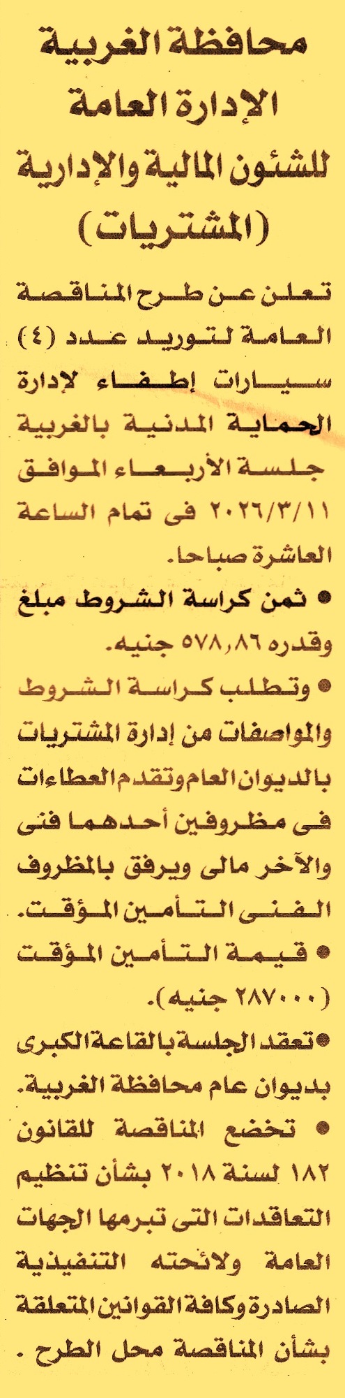 HOT Information مناقصة عامة لعملية توريد عدد 4 سيارات إطفاء لإدارة الحماية المدنية بالغربية عن جريدة الأخبار Post navigation بنك الشركة المصرفية العربية الدولية شركة الغازات البترولية